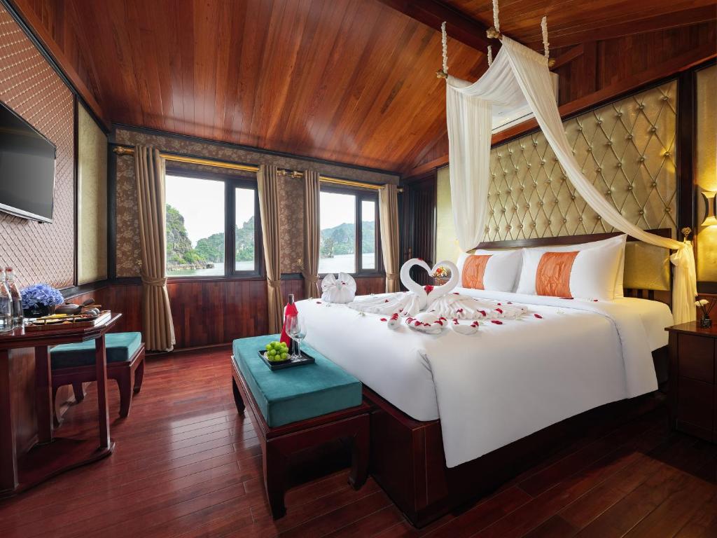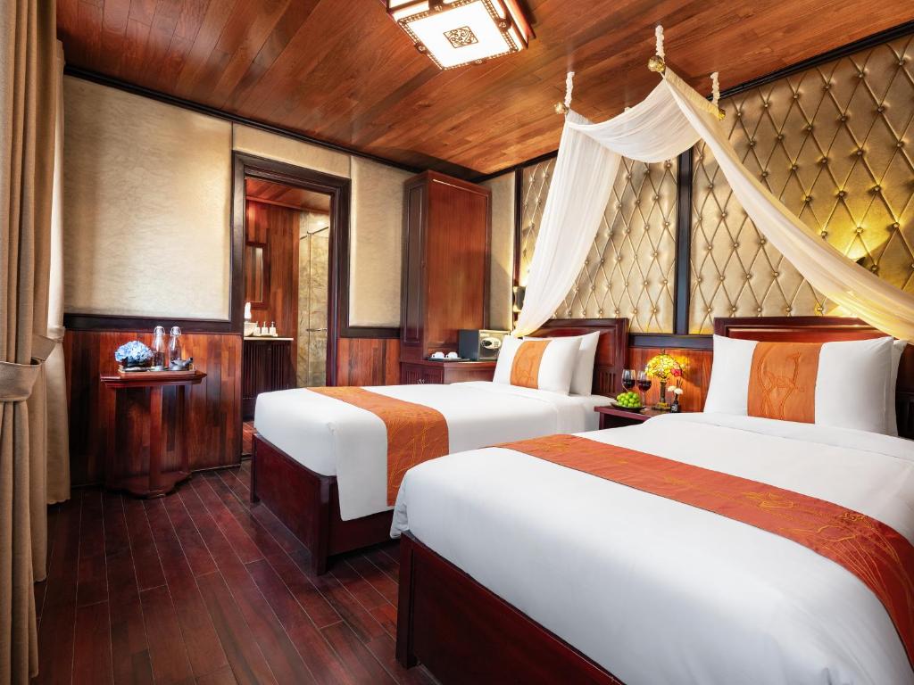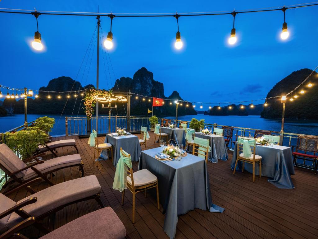 2 Days Explore Luon Cave & Titop Island 07.30-08.00: You will be picked up at your hotel in Hanoi Old Quarter and transferred to Ha Long (Limousine or shuttle bus booking only). 11:30-12:00 Upon arrival at Tuan Chau International Cruise Port, you will be warmly welcomed by our cruise staff at the waiting room and complete check-in procedures. 12:00 Upon boarding Amanda Cruise, our crew will welcome you with refreshing drinks and cold towels before checking in. The cruise departs Tuan Chau wharf, taking you on an exciting journey to discover the beauty of Ha Long Bay. On the way, you can see some of the most beautiful places in Ha Long and admire the majestic beauty of the Bay with thousands of limestone islands while the cruise heads towards Luon Cave & Titop Island. Enjoy lunch at our luxurious restaurant on board while the cruise moves towards Luon Cave. 14.00: Return to your cabin for a short rest and prepare for kayaking at Luon Cave. Arriving at Luon Cave area, you will join kayaking or rafting around the thousand-year-old rocks. 16.00: You will be taken to Titop Island by small boat. Visit Titop Island and hike to the top for a stunning view of Ha Long Bay or enjoy a swim in the clear blue water. 17.30-18.00 Back on board, you will join the sunset party and cooking class while the cruise moves towards the shore. Enjoy relaxing moments while sipping a cup of traditional Vietnamese tea or coffee on the sundeck amidst the stunning views and beautiful sunset. Halong Bay is peaceful during the day, but when the sun sets, the Bay becomes quieter and more peaceful. Our chef will guide you to make fresh spring rolls and then enjoy the spring rolls you made yourself. 17.30-18.30 Happy Hour – BUY 2 DRINK, GET 1 FREE 19.30 Gala Dinner. Enjoy dinner on the Sundeck (weather permitting) 20.30 After dinner, you will enjoy the peaceful bay view at night on the sundeck. You can also enjoy evening activities such as herbal foot bath in the room (free of charge), xoè dance, traditional fashion show “Heritage Footprints” and some drinks at Sky Bar and massage service (chargeable), while admiring the spectacular view of the Bay at night and squid fishing. The cruise anchors for you to have a peaceful night in the quiet area DAY 2: SUNG SOT CAVE – HA LONG BAY 06.15: Start the day with a Tai Chi class on the sundeck. 06.30-07.00 Enjoy a light breakfast with coffee, tea, cakes and fruits. 07.30 Explore Sung Sot Cave. This is one of the largest and most beautiful caves in Ha Long Bay. The cave has some unique rock formations that cannot be found anywhere else. The entrance to Sung Sot Cave is under the canopy of leaves. Walking through the steep stone steps, visitors can feel like climbing a mountain and experience the excitement as if they are stepping into the sky. 08.30-09.30 Back to the ship, you can rest in your room, enjoy the herbal foot bath prepared by our crew, sunbathe on the deck, take photos of Halong Bay or buy souvenirs on board. 09.30 Check-out time. Please leave your luggage outside the cabin and leave your room key at the reception. Our staff will transfer your luggage to the waiting area. During the waiting time, you can shop for some Amanda Cruise products. 10.00 Enjoy an early buffet lunch at the restaurant on the 2nd floor and settle the bill if any. 11.00 Arrive at Tuan Chau Marina. The trip ends. Thank you for using the service of 5-star Amanda Cruise. We look forward to welcoming you back on board our cruise. Goodbye and see you on the next trip! |