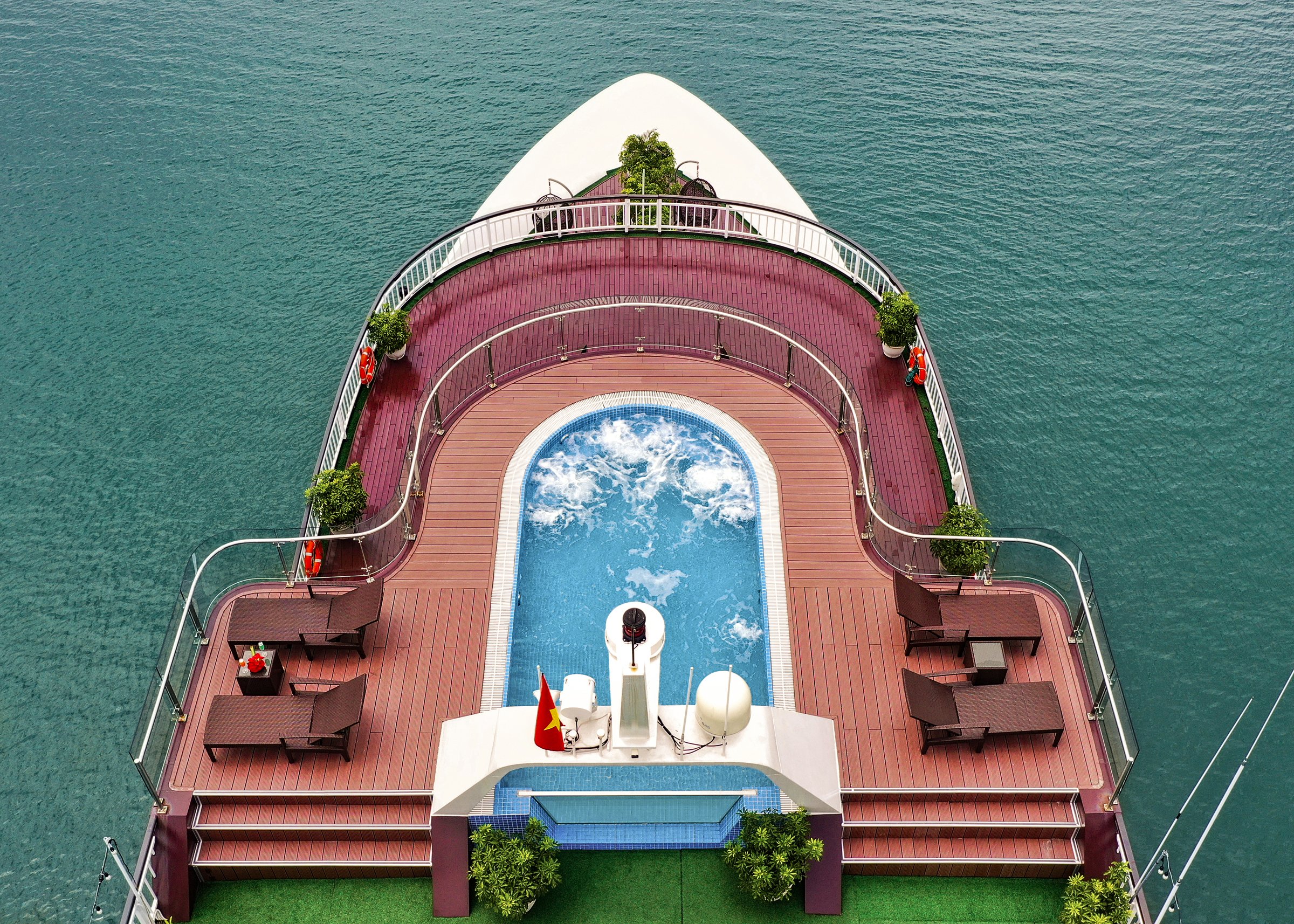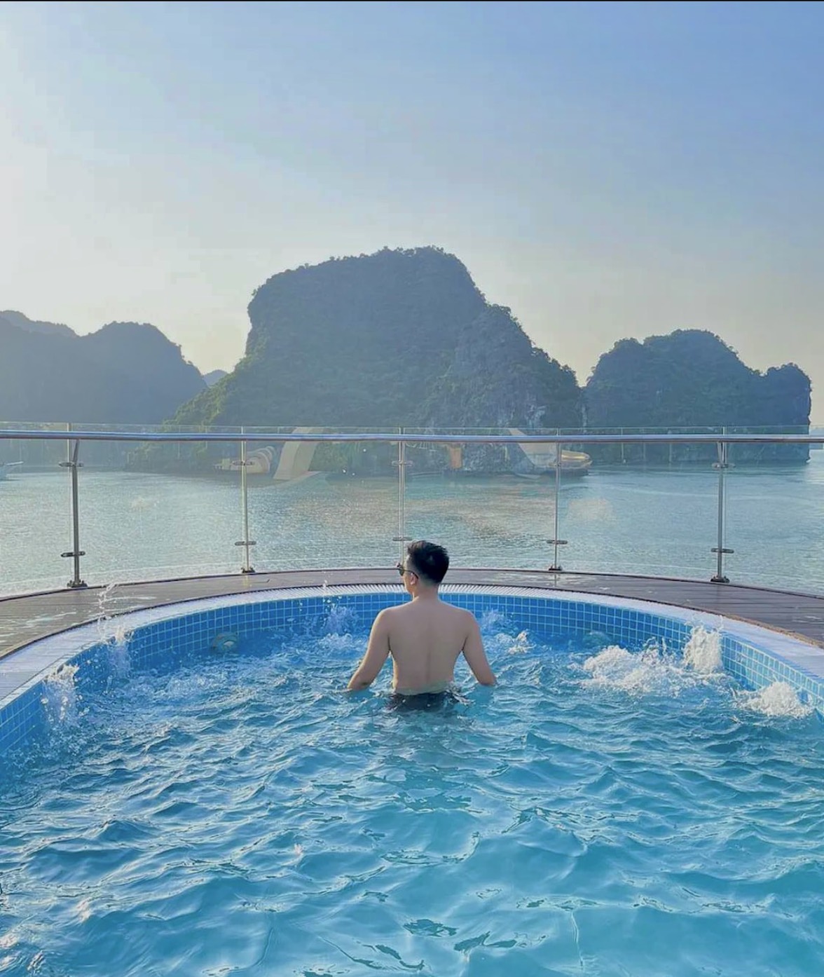 8.45 - 9.15: Limousine car picks you up at the hotel lobby in the old quarter (If you book the pick-up and drop-off service). 12.15 - 12.30: You arrive at Dora Cruise waiting room: box 35 Tuan Chau port, check in & transfer boat will take you to Dora Cruise. 12.30 - 13.15: You board the tender to move to Dora Cruise. 13.15 - 13.30: You board Dora Cruise to enjoy welcome drink, listen to cruise introduction, schedule and safety instructions, check in. Then enjoy lunch, while the cruise moves to visit the magnificent Ha Long Bay, admire the interesting rocks on the bay such as Con Vit Islet, Thuong Tay Islet, Gia Luan Port... 15.30 - 17.00: Explore the natural lagoon area of Lan Ha Bay. Drop anchor to swim or simply sunbathe on our journey (private, wild and fresh air). Kayaking in Tra Bau area. Or soak in the Jacuzzi. 18.00 - 18.15: Join the afternoon tea party and fresh fruit watching the sunset on the deck, take photos and relax. 18.30: Join the cooking class directly instructed by the head chef of Dora Cruise. You have the opportunity to practice traditional Vietnamese dishes such as spring rolls or famous Vietnamese dishes. 19.00 – 19.15: Time for dinner to enjoy special seafood and typical Vietnamese dishes on the cruise. 21:00: Evening entertainment: play games on the cruise: playing cards, chess, listening to music, squid fishing, resting and staying overnight on Dora Cruise.