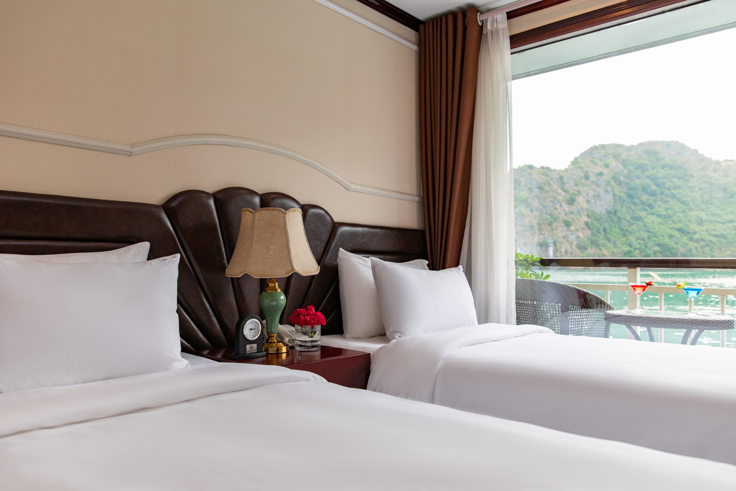05.30 – 07.00: Wake up early to watch the sunrise on the deck. 7:00: Join a Tai Chi lesson on the sundeck. 07.45 – 08.45: Buffet breakfast at Dora Cruise's restaurant. 8.45 – 10.00: You will be at the reception to get ready to visit Dark & Bright Cave by shuttle boat. Visit small floating houses and explore the caves with stalactites on a local bamboo boat (rowed by local people) at Sang - Toi cave. Enjoy a peaceful morning with the beautiful scenery around you. 10.00: Return to Dora cruise, check out. 10.30: Check out. 10.45 - 11.00: Lunch and pay for additional services on the cruise; 11.30 - 11.45: Board the ship to return to Tuan Chau Port, say goodbye to the sailors and end the journey. 12.15 - 12.30: Arrive at Tuan Chau wharf; 12.30 - 12.45: Board the bus to return to Hanoi.