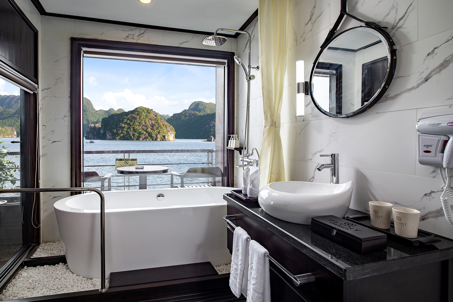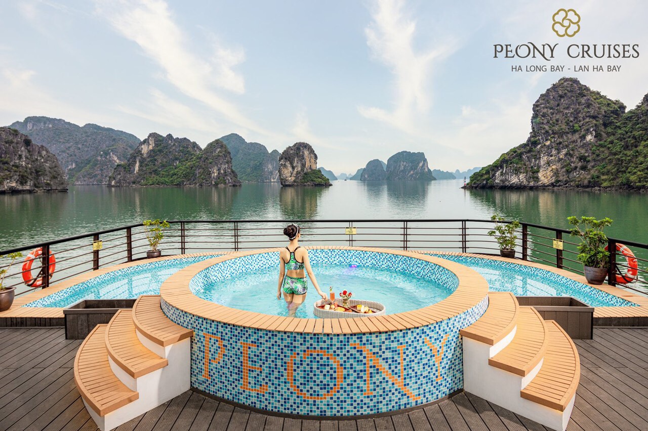 DAY 1: TUAN CHAU - HA LONG BAY - LAN HA BAY - TRA BAU 8:30 – 8:50: Limousine pick up at your hotel in the Old Quarter or at 34 Hoa Ma, Hai Ba Trung, Hanoi. (There will be an additional charge for the shuttle if booking from Hanoi). 12:00: Peony Cruises crew members will welcome you at 34, Tuan Chau Marina, Quang Ninh. 12:30: You will be transferred to our support boat and taken from the pier across the bay to board our luxury ship, Peony Cruises. During this time, we will brief you about the itinerary. 13:00: Welcome drink, wet towel and special lunch with fresh and delicious dishes. You will be mesmerized Enjoy a delicious lunch of fresh seafood and many other delicious dishes while cruising along Lan Ha Bay with breathtaking scenery. 15:30: Visit Tra Bau area, famous for its pristine, poetic natural beauty and attractive seascape of Lan Ha Bay. This is the most ideal time to kayak to explore the most authentic beauty of the limestone islands. Immerse yourself in the emerald green waters of the bay or enjoy the Jacuzzi pool on Peony Cruise. 17:30 - 18:30: Join us for a cooking demonstration to learn how to make one of the most famous Vietnamese dishes, spring rolls. Or head up to the top deck of the cruise, where you can admire the stunning sunset over the Gulf of Tonkin. Enjoy Happy Hour – BUY 1 GET 1 FREE at the bar. This is 19:30: Enjoy delicious local dishes prepared and served by our talented chef. This is a delightful meal in an intimate romantic setting. 21:00 – 22:00: Relax and sip on exotic cocktails and drinks at the rooftop bar (charges apply). Pamper yourself with an optional spa treatment or simply relax on the deck under the dazzling sky. Or try your luck at squid fishing on the main deck. DAY 2: LAN HA BAY – CAT BA ISLAND – TUAN CHAU 6:00: Start your day full of energy with a Tai Chi session and watch the sun rise over the horizon. 6:45 - 7:15: Breakfast is served while the cruise returns to Gia Luan pier. (Breakfast time can be adjusted and follows the actual itinerary) 7:30 - 9:00: You will join the tour to visit Cat Ba World Biosphere Reserve by shuttle boat. It takes 30 minutes to travel from Gia Luan to Trung Trang - one of the most impressive caves in Cat Ba Island, Vietnam. The limestone cave has thousands of talaclite with many different shapes, bringing geological value with a unique cave ecosystem. 9:30: Return to the main boat from the cave and check out. Luggage is left outside the room. Lunch is served at the restaurant. Bill payment at the restaurant bar (if applicable) 10:30 - 11:00 Depart Peony Cruises and transfer back to Lot #34, Big Bay group wharf, Tuan Chau Marina. Relax and wait for luggage. 11:30 - 12:00 Passengers are ready at Tuan Chau Marina. Note: Itinerary is subject to change without prior notice, depending on weather and other operating conditions. SERVICES INCLUDED IN THE PRICE SERVICES NOT INCLUDED IN THE PRICE |