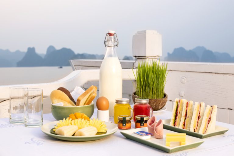 NGÀY 2: ĐỘNG SỬNG SỐT - VỊNH HẠ LONG 06.15 : Bắt đầu ngày mới với lớp học Thái Cực Quyền trên boong tàu. 06.30-07.00 Thưởng thức bữa sáng nhẹ với cà phê, trà, bánh ngọt và trái cây, Phở Việt Nam, quầy trứng. 07:30 Khám phá Hang Sửng Sốt. Đây là một trong những hang động lớn và đẹp nhất ở Vịnh Hạ Long. Hang có một số khối đá độc đáo không thể tìm thấy ở bất kỳ nơi nào khác. Đường vào cửa hang Sửng Sốt nằm dưới tán lá. Đi bộ qua những bậc đá dốc, du khách có thể có cảm giác như đang leo núi và trải nghiệm cảm giác phấn khích khi bước vào bầu trời. 08.30-09.30 Trở lại tàu, bạn có thể nghỉ ngơi trong phòng, tắm nắng trên boong tàu, chụp ảnh Vịnh Hạ Long 09:30 Làm thủ tục trả phòng. Vui lòng để hành lý bên ngoài cabin và để lại chìa khóa phòng tại quầy lễ tân. Nhân viên của chúng tôi sẽ chuyển hành lý của bạn đến khu vực chờ. 10.00 Thưởng thức bữa trưa tự chọn sớm tại nhà hàng ở tầng 2 và thanh toán hóa đơn nếu có. 11.00 Đến Bến du thuyền Tuần Châu. Đạp xe khám phá Đảo Tuần Châu (áp dụng cho khách hàng đi Xe buýt) sau khi làm thủ tục trả phòng. Chuyến đi kết thúc.Cảm ơn bạn đã sử dụng dịch vụ của Du thuyền Hera Classic Boutique. Chúng tôi mong được chào đón bạn một lần nữa trên hành trình của chúng tôi. Tạm biệt và hẹn gặp lại bạn trong chuyến đi tiếp theo!