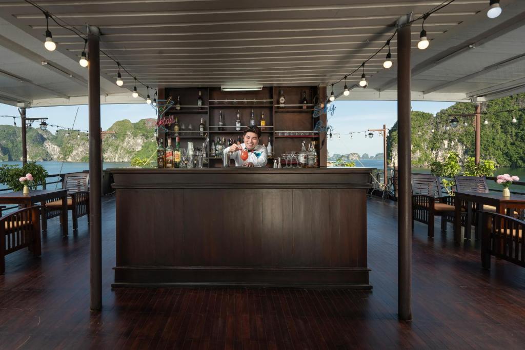 NGÀY 2: VỊNH HẠ LONG – HÀ NỘI (Ăn sáng/ Trưa) • 06:15 Ngắm vịnh vào buổi sáng là một trải nghiệm tuyệt vời, đánh thức mọi giác quan của bạn bằng buổi tập Thái Cực Quyền trên boong tắm nắng trong khi nạp vitamin biển để làm mới bản thân trước khi thưởng thức bữa sáng. • 06:30 Cà phê, trà và bánh ngọt cho bữa sáng được phục vụ tại nhà hàng. • 07:30 Tham quan Đảo Ti Tốp. Ti Tốp là một hòn đảo đá vôi nhỏ với một trong những bãi biển cát đẹp nhất ở Vịnh Hạ Long. Bạn có thể đắm mình trong làn nước ngọc lục bảo và đi bộ lên đỉnh để ngắm toàn cảnh vịnh tuyệt đẹp. • 09:30 Quay lại tàu du lịch. Làm thủ tục trả phòng và thanh toán hóa đơn tại quầy lễ tân. • 10:00 Ăn trưa trong khi du ngoạn trở về. Thư giãn trên boong tắm nắng hoặc trong nhà hàng. • 11:30 Xuống tàu tại Bến du thuyền Tuần Châu, đã đến lúc nói lời chúc tốt đẹp nhất và kết thúc chuyến đi cùng chúng tôi. • 14:30 Quay lại điểm trả khách tại Hà Nội. Kết thúc hành trình. Cảm ơn bạn đã chọn chúng tôi! (*) Xin lưu ý rằng hành trình có thể thay đổi mà không cần thông báo trước.