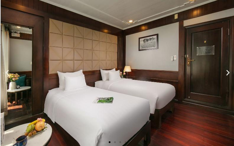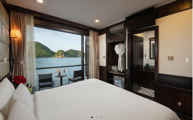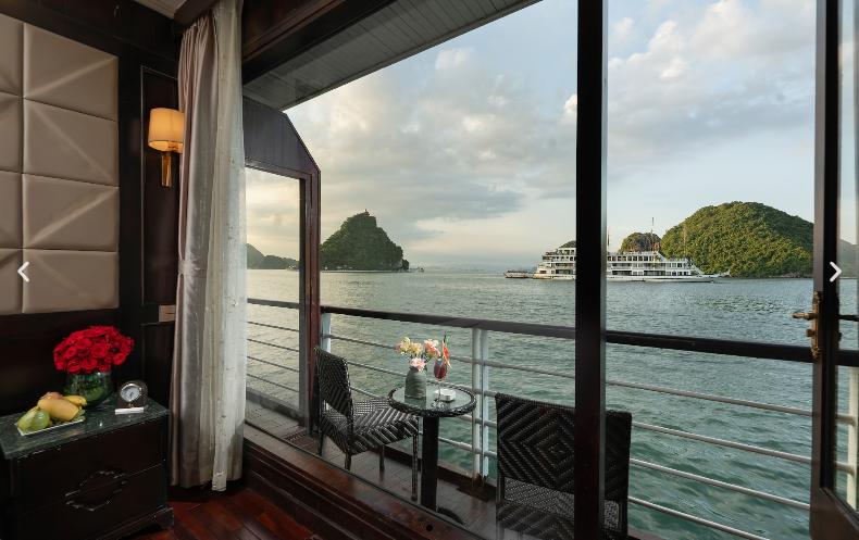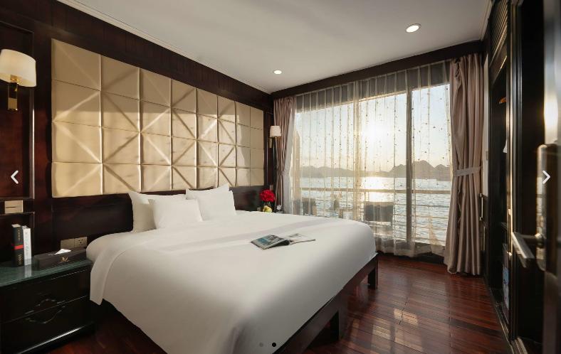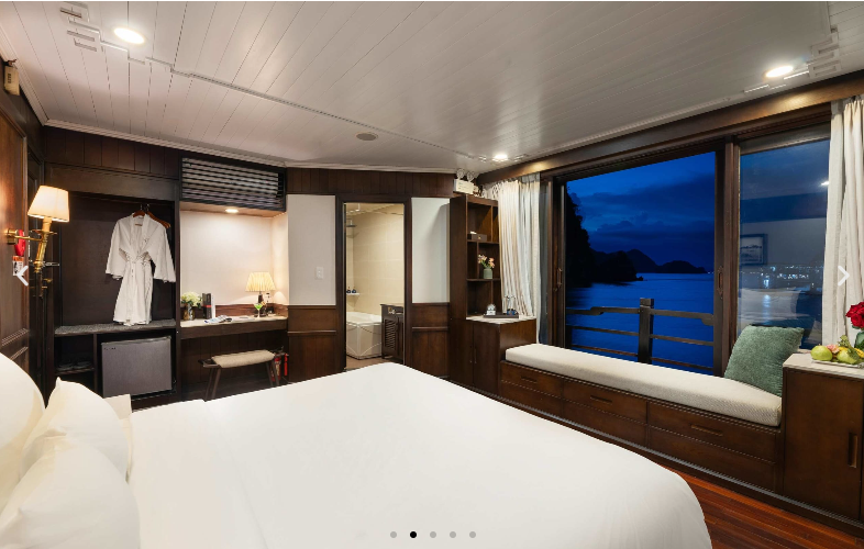 ROYAL SUITE BALCONY ✓ Vị trí: Tầng 2 ✓ Ban công riêng ✓ Số cabin: 2 ✓ Diện tích: 30m2 ✓ Loại giường: 1 Giường đôi (cố đị