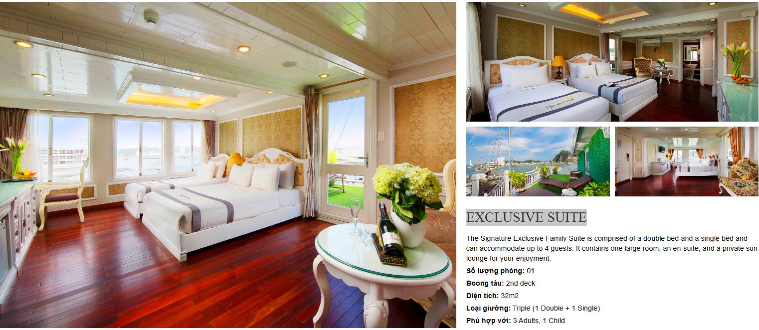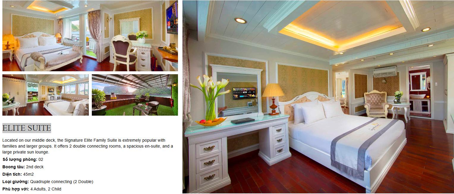 - 01 đêm trải nghiệm du thuyền sang trọng Signature lịch trình 2 ngày 1 đêm tại phòng ngủ hạng sang