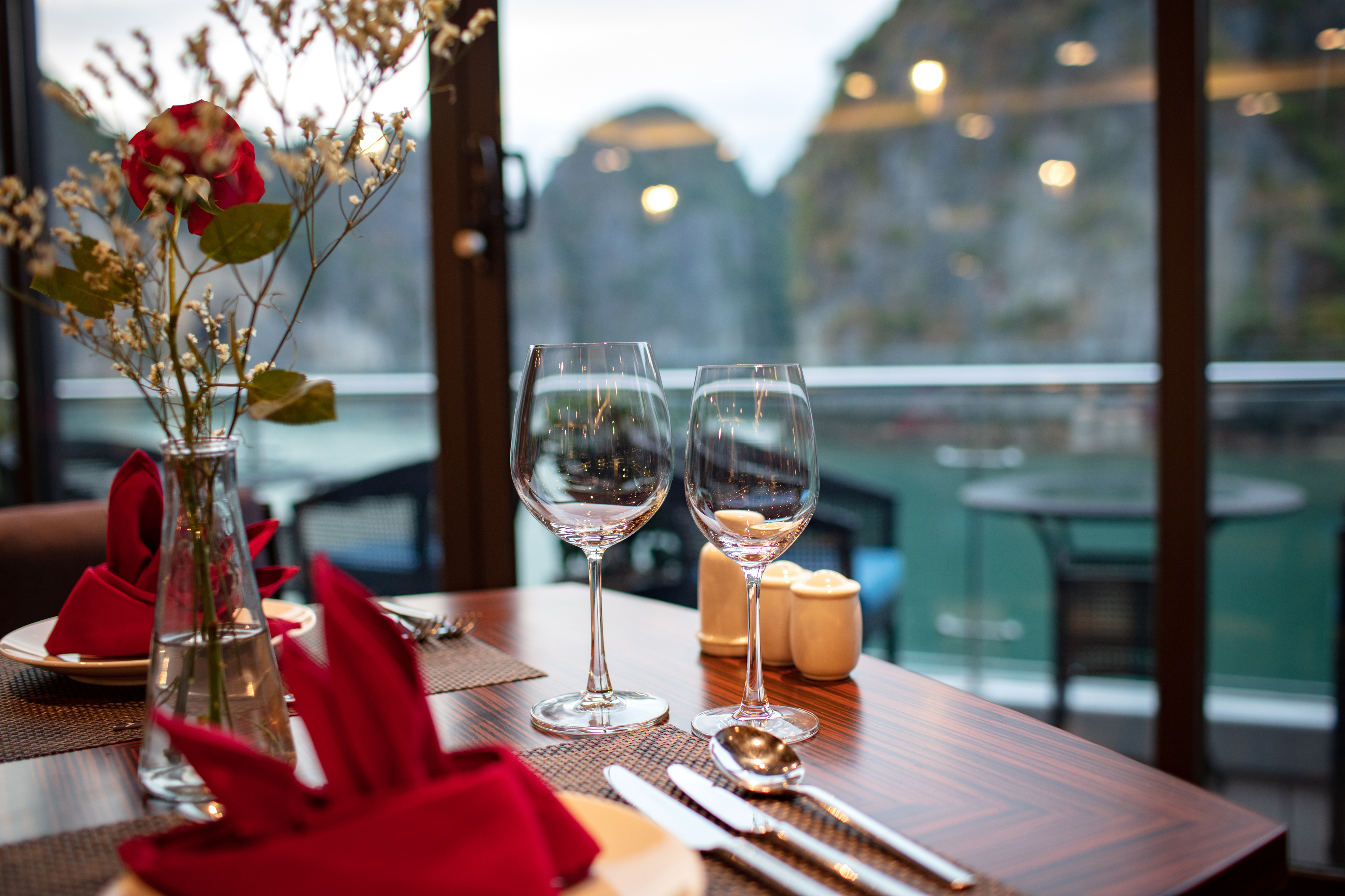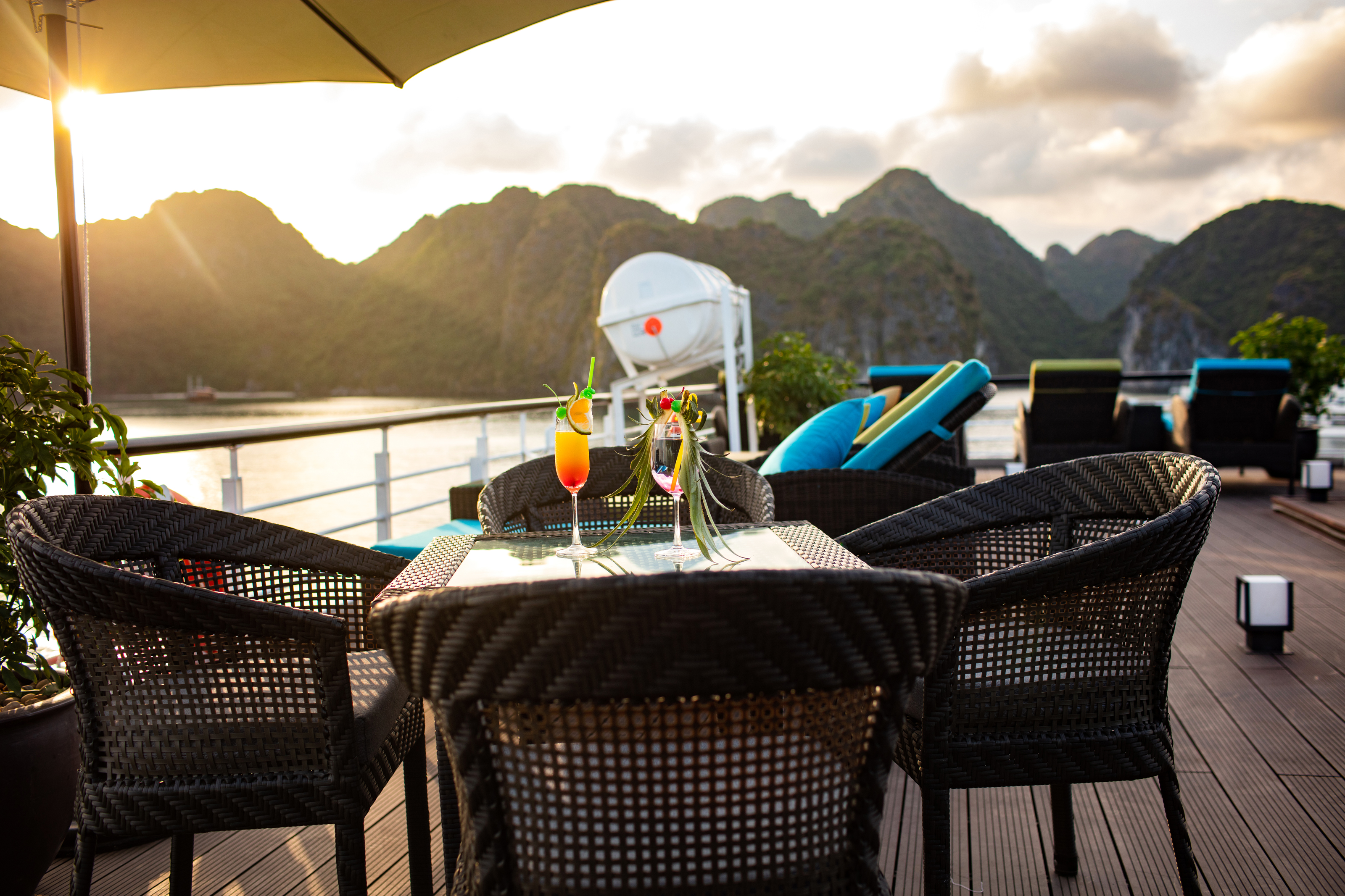 • Tặng kèm Voucher trị giá 200.000 VNĐ/ phòng để sử dụng các dịch vụ tại tàu (đồ uống /massage,…)