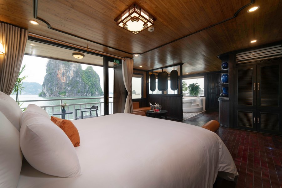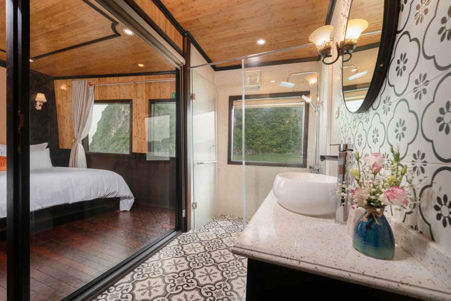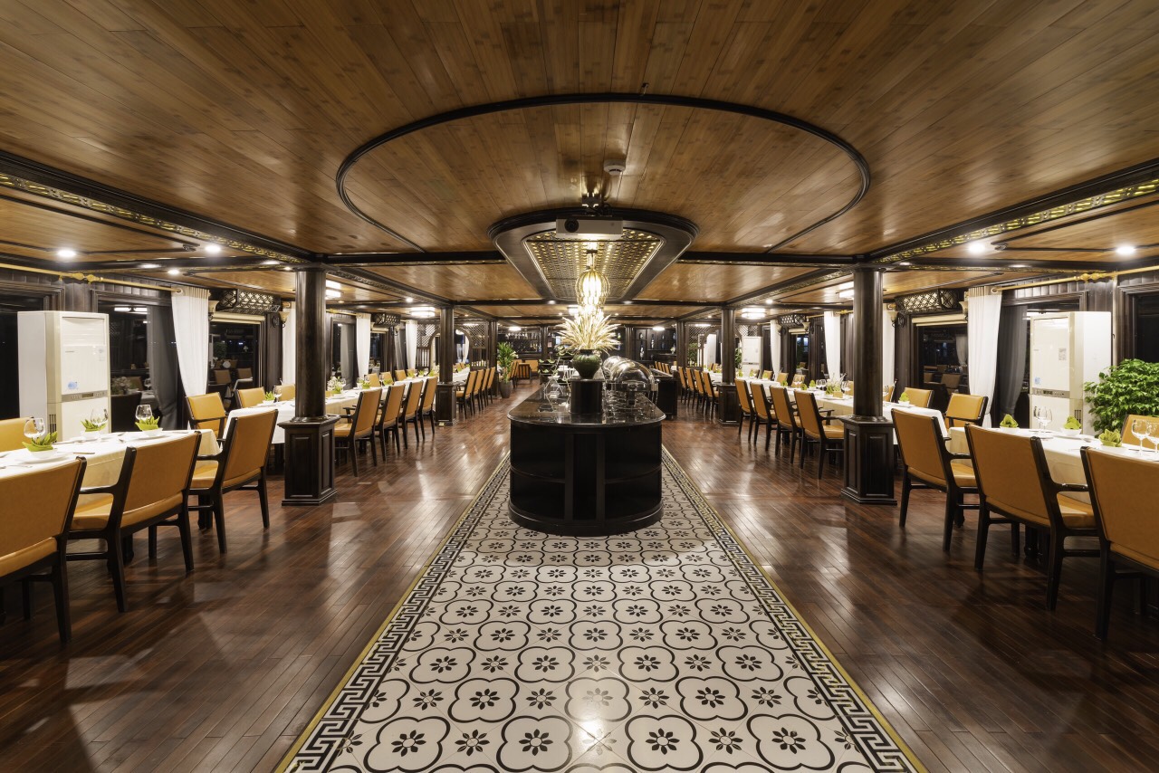 | 12:15 | Xuồng máy cao tốc đưa đoàn lên tàu làm thủ tục check in, thưởng thức nước uống chào mừng, nghe giới thiệu về lịch trình tour và các quy định an toàn trên tàu |