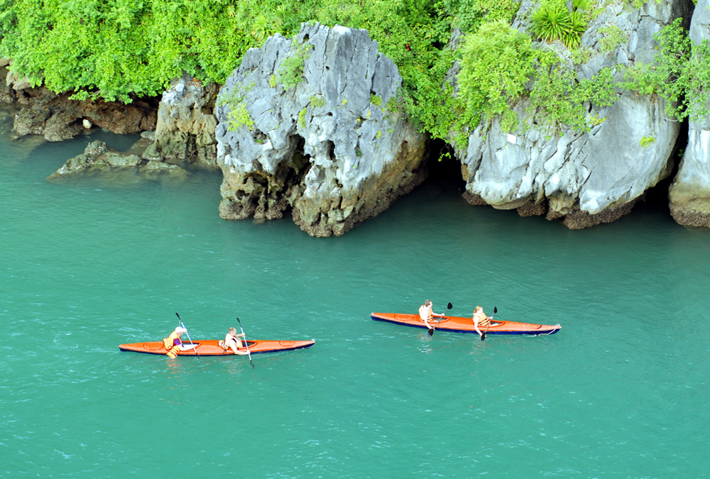 LỊCH TRÌNH CHI TIẾT: 08h00-08h30: Xe và hướng dẫn viên đón Quý khách tại các khách sạn khu vực trung tâm phố Cổ và Nhà hát lớn khởi hành cho chuyến đi thăm Vịnh Hạ Long. 11h30-12h00: Đến cảng tàu Tuần Châu, Đoàn tập trung tại nhà chờ theo sự hướng dẫn của hướng dẫn viên đợi mua vé và phát vé cho Quý khách để lên tàu bắt đầu hành trình khám phá Vịnh. Tàu sẽ đi qua rất nhiều các hòn đảo lớn nhỏ với nhiều hình dáng khác nhau, trong đó có Hòn Gà Chọi - biểu tượng của Hạ Long … Quý khách thưởng thức bữa trưa trên tàu. 14h00: Đến đảo Bồ Hòn. Quý khách thăm quan Hang Sửng Sốt - Một trong những hang động đẹp nhất vịnh Hạ Long. Tiếp theo, Quý khách sẽ tự do chèo Kayak hoặc đi thuyền nan thăm Hang Luồn (chi phí chèo kayak hoặc ngồi thuyền nan chưa bao gồm). Sau 30 phút chèo Kayak, Quý khách lên tàu để đến với đảo Titop. Quý khách có thể tắm biển tại bãi tắm Titop với bãi cát trắng, hoặc thử trekking leo lên đỉnh núi Titop ngắm nhìn toàn cảnh Vịnh Hạ Long. 16h30: Quý khách quay trở lại tàu. Tàu sẽ di chuyển về lại Cảng. Quý khách có thể tắm nắng trên boong tàu, nghe nhạc và thư giãn, hòa mình vào thiên nhiên của Vịnh Hạ Long và thưởng thức Sunset Party với trà chiều và bánh ngọt. 17h30-18h00: Tàu cập bến. Tạm biệt Vịnh Hạ Long, Quý khách lên xe về Hà Nội. 20h00-20h30: Về tới Hà Nội, xe đưa Quý khách về lại điểm đón ban đầu. Kết thúc chương trình khám phá Kỳ Quan thiên nhiên thế giới Vịnh Hạ Long trong ngày. Hẹn gặp lại Quý khách! Lưu ý quan trọng: Thời gian đi thăm quan Vịnh Hạ Long có thể được điều chỉnh phù hợp với điều kiện của từng ngày khởi hành hoặc có thể bị thay đổi điều chỉnh phụ thuộc vào thời tiết Hạ Long hoặc sự điều phối của Ban quản lý Vịnh Hạ Long. Trong một số trường hợp có thể có lệnh cấm xuất bến bất chợt do có gió to hoặc mưa giông mà không cần thông báo trước. Mong Quý khách chấp nhận và thông cảm! GIÁ TOUR: VND / KHÁCH (áp dụng cho khách lẻ ghép đoàn)