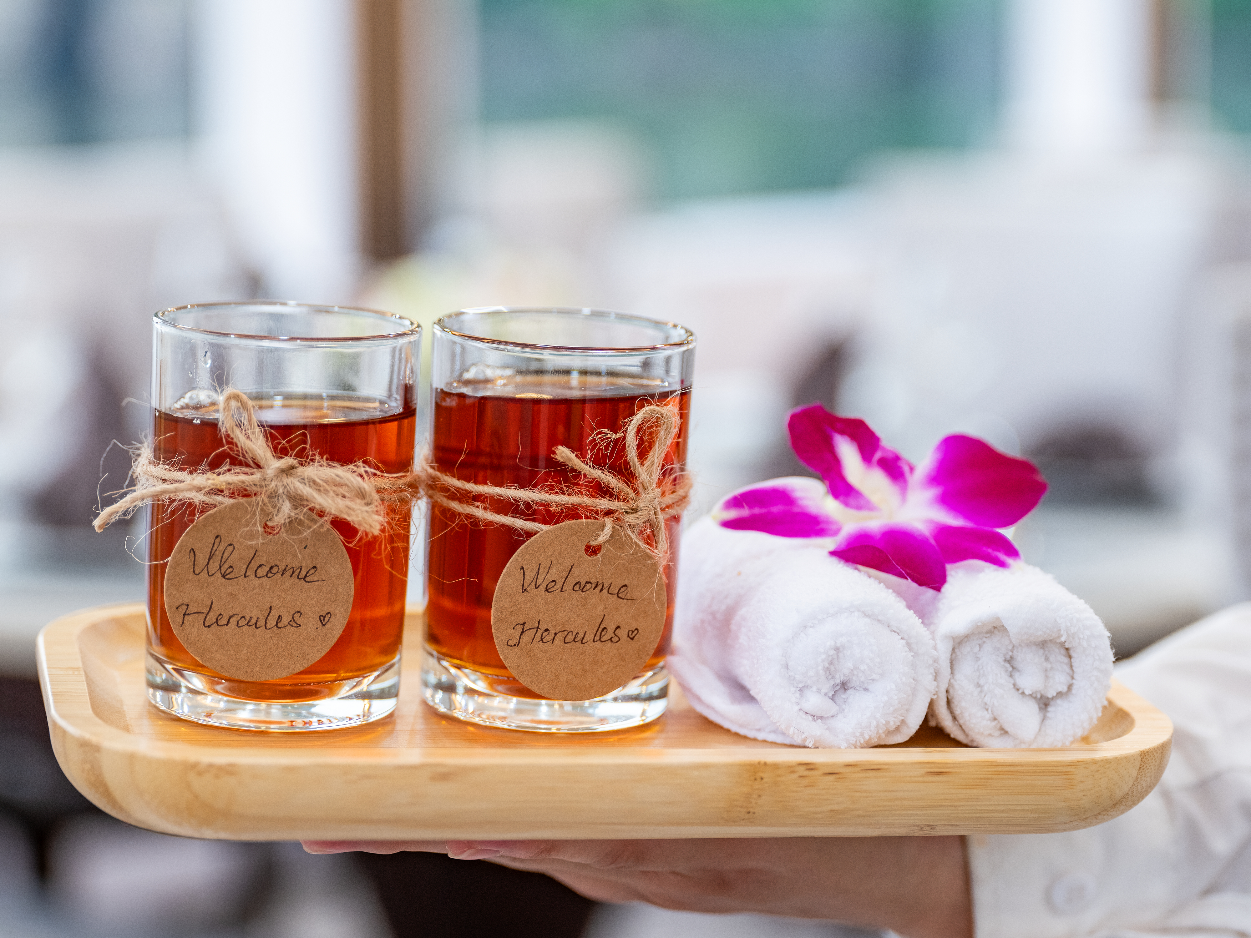 Sau chuỗi các hoạt động diễn ra, quý khách về tàu nghỉ ngơi thư giãn, ngắm hoàng hôn đang dần buông xuống. Tiệc trà chiều miễn phí được phục vụ quý khách với trà, nước hoa quả tươi, bánh ngọt và trái cây theo mùa. Đây chính là thơi gian để quý khách lưu lại những bức hình, khoảnh khắc tuyệt đẹp của di sản.
