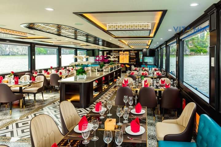 Du thuyền 5* thăm Vịnh Hạ Long trong ngày, du thuyền ăn tối , trang thiết bị hiện đại với chương trình phong phú, hệ thống 2 nhà hàng sức chứa lên đến 99 khách