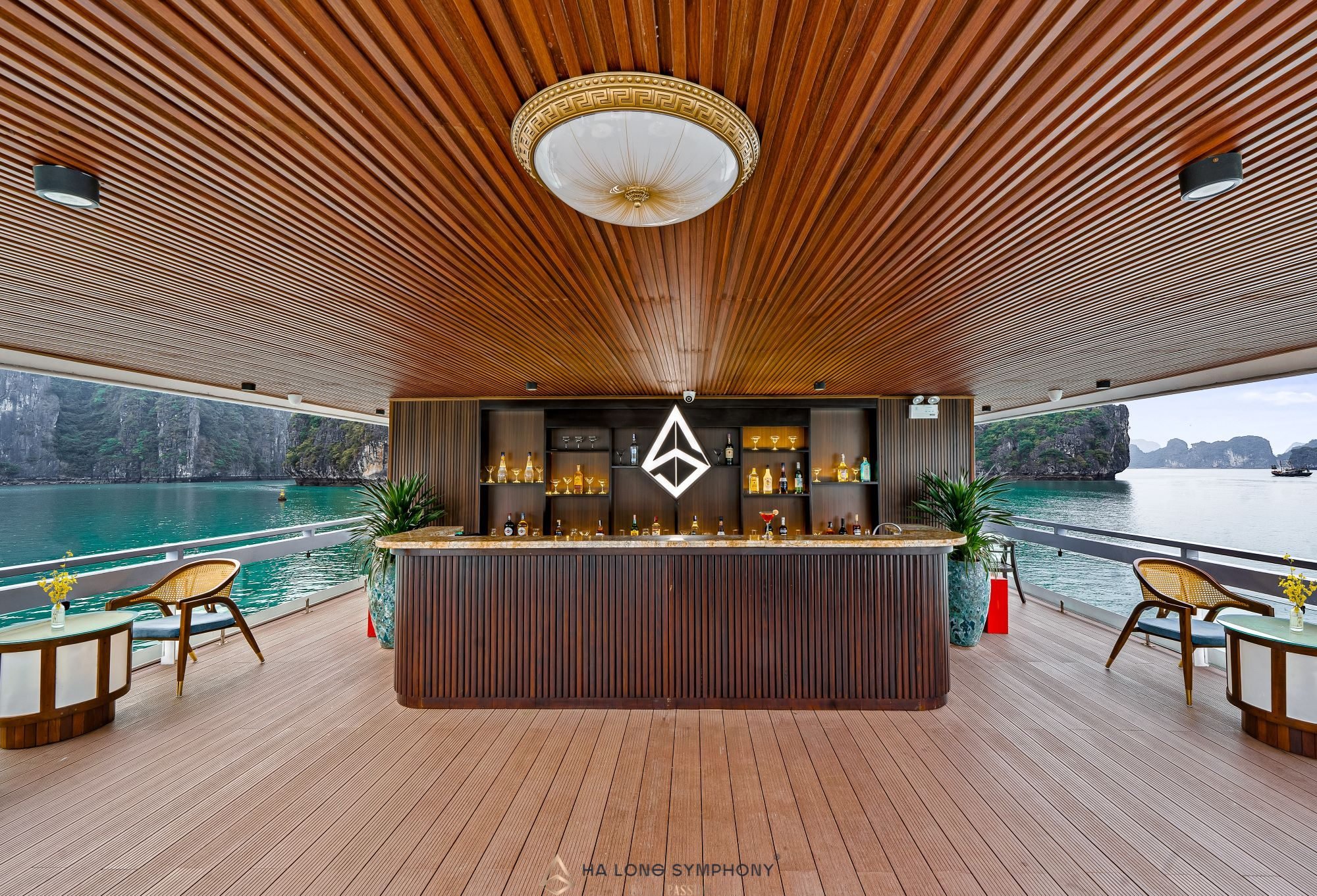 • Thấu hiểu được điều đó, cùng sự tinh tế và khéo léo, sự sáng tạo và đẳng cấp, du thuyền Ha Long Symphony được tạo ra để trở thành sự lựa chọn dễ dàng và toàn diện nhất cho tất cả. Bên bờ di sản, Ha Long Symphony viết lên hành trình mang tên Symphony By Night – sự kết hợp hài hoà và sống động giữa ẩm thực, âm nhạc và bầu trời đêm vịnh Hạ Long. Tại đây, quý khách không chỉ đơn thuần thưởng thức bữa tối bằng vị giác, mà tất cả các giác quan đều được làm thức tỉnh nhằm giúp quý khách cảm nhận 1 cách trọn vẹn nhất hương vị của từng món ăn, giai điệu của từng bản nhạc, cùng ý nghĩa của từng lời ca giữa không gian mênh mông thiên thuỷ.