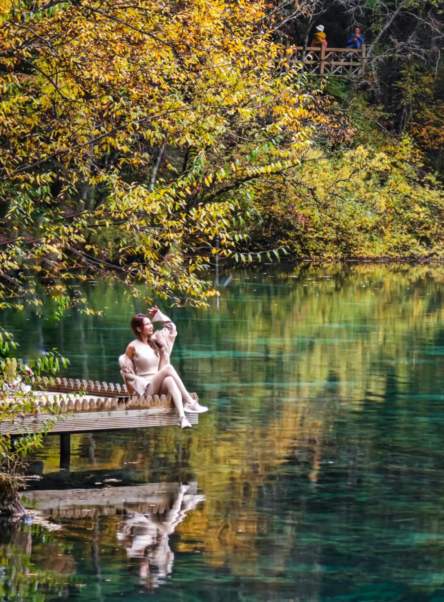 Chiều: Tiếp tục tham quan Cửu Trại Câu - nơi đây cũng chính là bối cảnh được chọn để quay Hoa Quả Sơn trong phim Tây Du Ký .