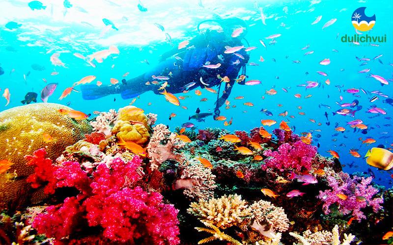 10:30: Arrive at Cu Lao Cham. Visit the Marine Protected Area, Bai Lang residential area, the storm shelter area for fishermen, and Hai Tang Pagoda – an ancient pagoda over 400 years old. Visit Tan Hiep Market for shopping. Participate in snorkeling to explore coral reefs and marine life.